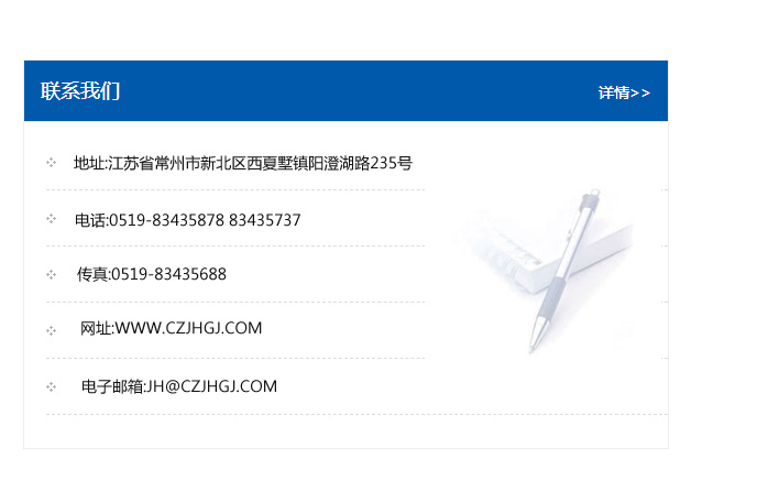 地址:常州市新北區友邦商務大廈1幢16、17層  電話:0519-85101652  傳真:0519-85112595  郵編:213022  網址:www.cz-jiayue_cn.hndajy.com  郵箱:xiajifengaa@163.com